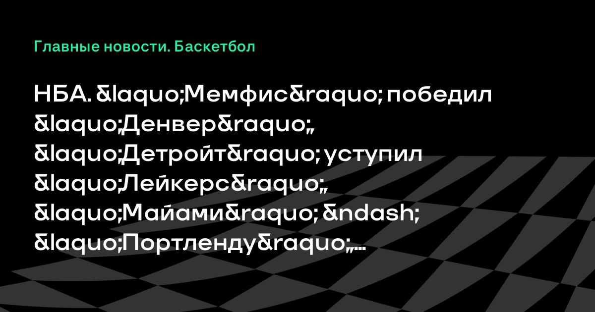 НБА. «Мемфис» победил «Денвер», «Детройт» уступил «Лейкерс», «Майами» – «Портленду», «Даллас» был сильнее «Кливленда» и другие результаты
