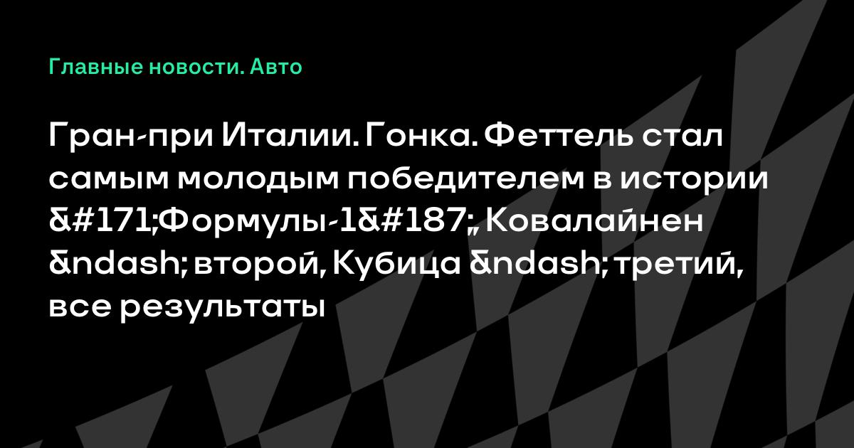 Гран-при Италии. Гонка. Феттель стал самым молодым победителем в истории «Формулы-1», Ковалайнен – второй, Кубица – третий, все результаты