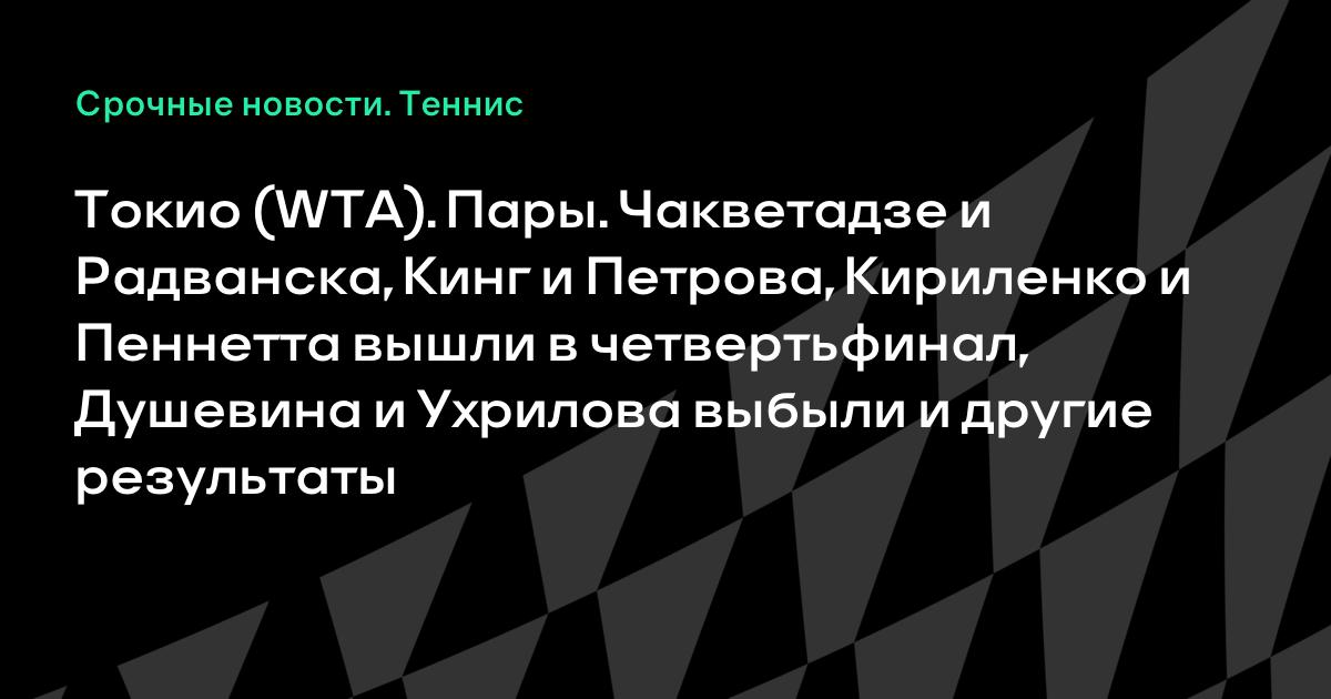 Токио (WTA). Пары. Чакветадзе и Радванска, Кинг и Петрова, Кириленко и Пеннетта вышли в четвертьфинал, Душевина и Ухрилова выбыли и другие результаты