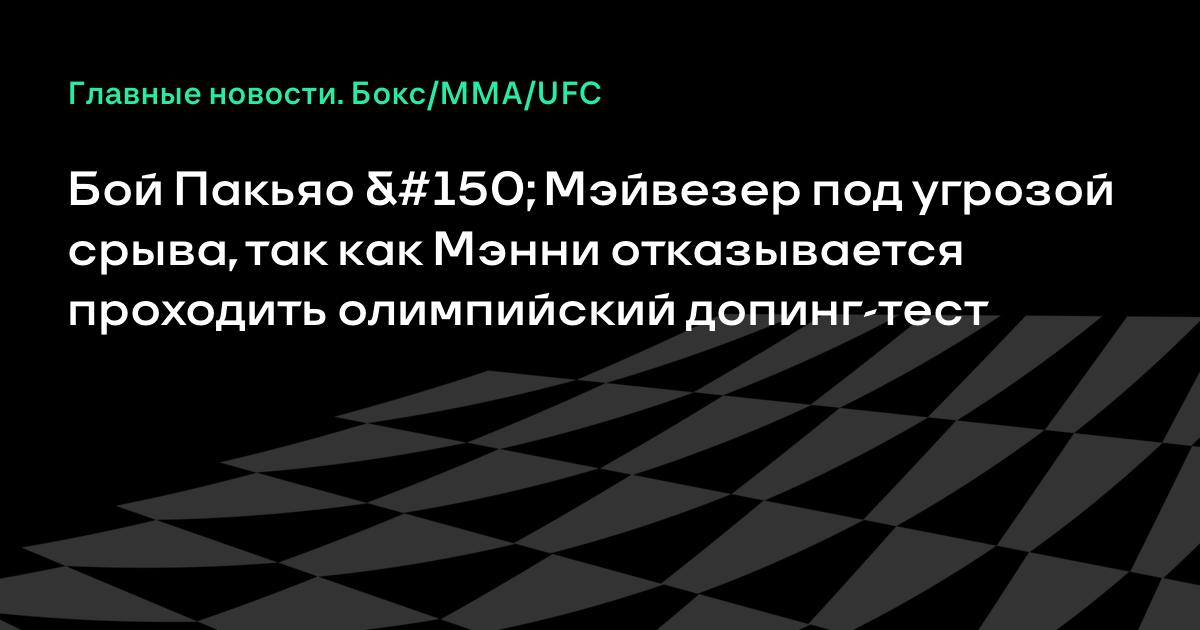 Бой Пакьяо Мэйвезер под угрозой срыва, так как Мэнни отказывается проходить олимпийский допинг-тест