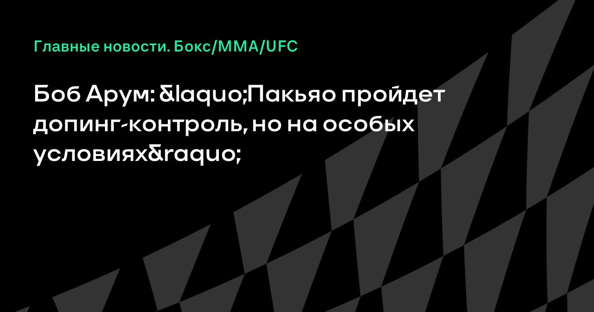 Боб Аруи, промоутер филиппинца Мэнни Пакьяо, заявил, что боксер пройдет необходимые допинг-тесты, как до, так и после боя, но на особых условиях.