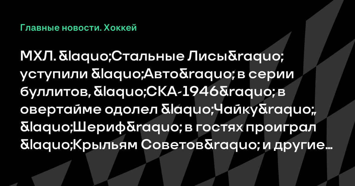 МХЛ. «Стальные Лисы» уступили «Авто» в серии буллитов, «СКА-1946» в овертайме одолел «Чайку», «Шериф» в гостях проиграл «Крыльям Советов» и другие результаты