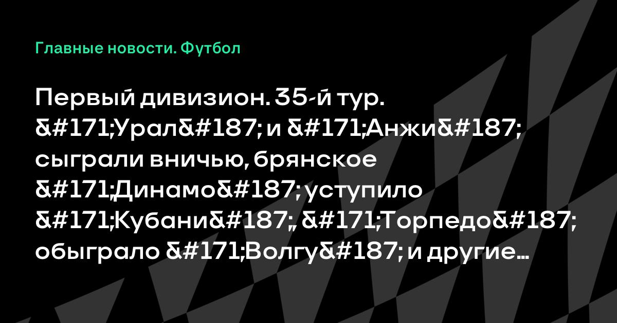 Первый дивизион. 35-й тур. «Урал» и «Анжи» сыграли вничью, брянское «Динамо» уступило «Кубани», «Торпедо» обыграло «Волгу» и другие матчи