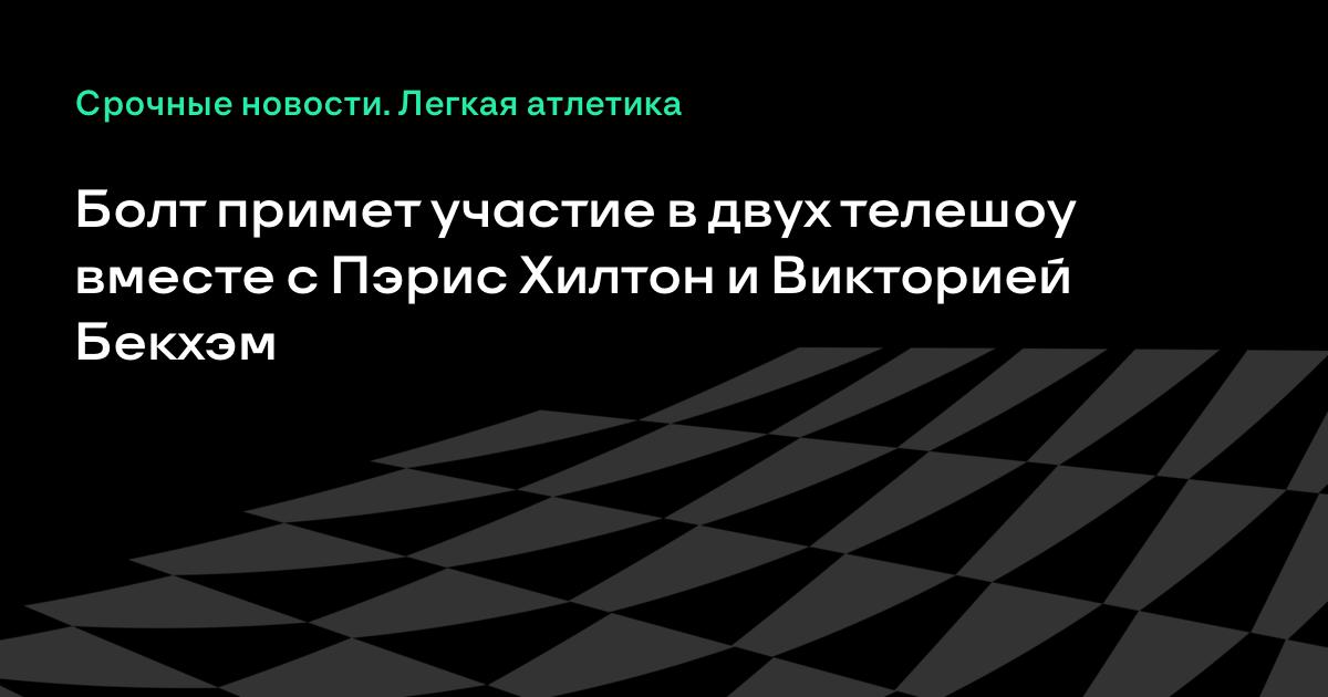 Трехкратный олимпийский чемпион в беге Усэйн Болт в ближайшие дни примет участие в двух телешоу. 25 сентября ямаец вместе с Пэрис Хилтон выступит в шоу Дэвида Леттермэна. А на следующий день Болт станет гостем передачи 'Live with Regis & Kelly', в которой также ожидается появление жены Дэвида Бекхэма Виктории.