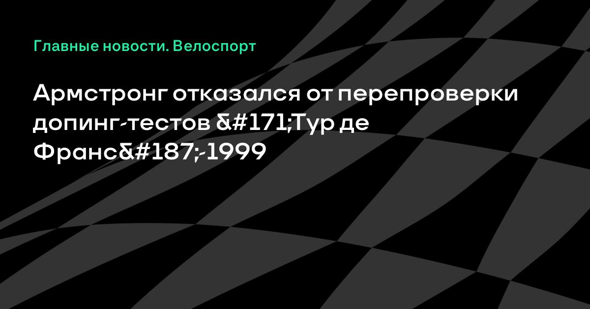 Американский велогонщик Лэнс Армстронг отказался от перепроверки допинг-тестов, взятых у него во время «Тур де Франс»-1999. Французское антидопинговое агентство (AFLD) предложило спортсмену опровергнуть слухи о том, что в это время Армстронг сдал шесть положительных проб.