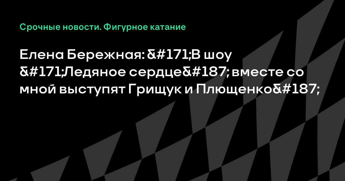 Елена Бережная: «В шоу «Ледяное сердце» вместе со мной выступят Грищук и Плющенко»