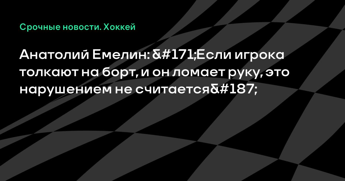 Анатолий Емелин: «Если игрока толкают на борт, и он ломает руку, это нарушением не считается»