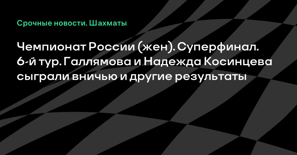 Чемпионат России (жен). Суперфинал. 6-й тур. Галлямова и Надежда Косинцева сыграли вничью и другие результаты