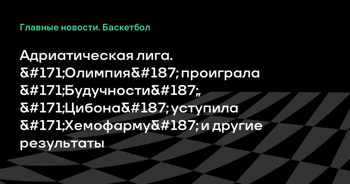 Адриатическая лига. «Олимпия» проиграла «Будучности», «Цибона» уступила «Хемофарму» и другие результаты