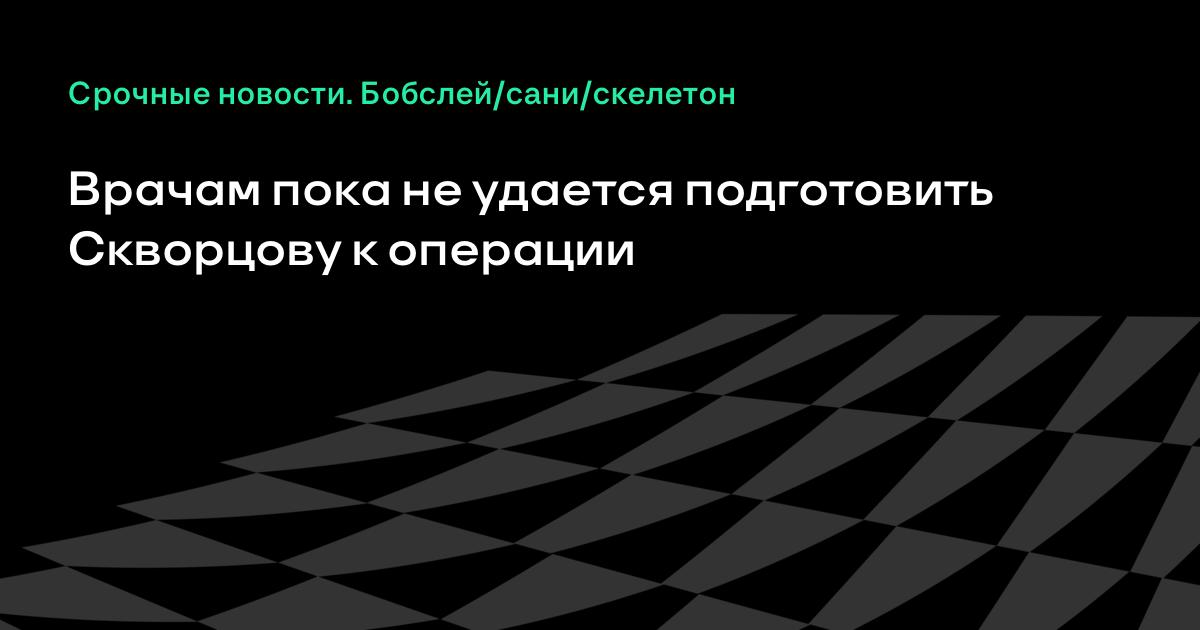 Скворцова, которая более месяца назад получила тяжелые травмы в результате столкновения двух российских болидов на трассе в немецком Кенигзее, находится в клинике в Мюнхене. Операция по пластике кровеносных сосудов и пересадке мышц ноги была намечена на 21 декабря, но переносится из-за постоянно возникающих очагов воспаления в ранах. Спортсменка по-прежнему находится в состоянии искусственной комы.