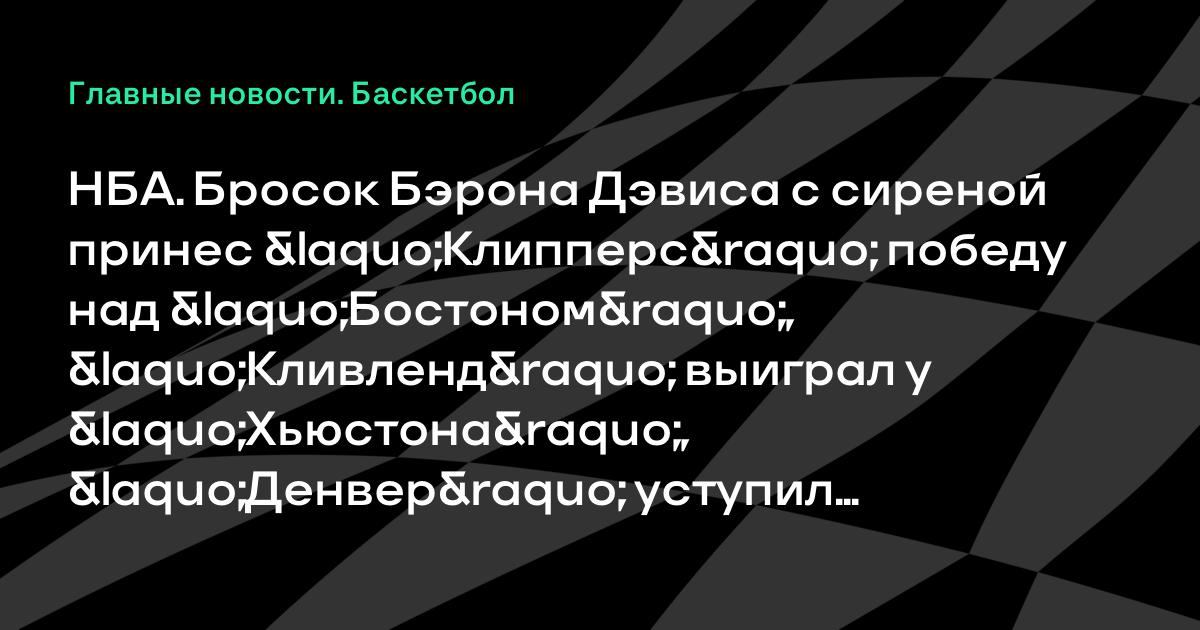 НБА. Бросок Бэрона Дэвиса с сиреной принес «Клипперс» победу над «Бостоном», «Кливленд» выиграл у «Хьюстона», «Денвер» уступил «Далласу» и другие результаты