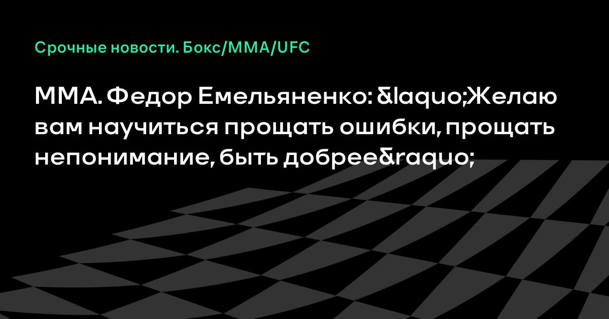 MMA. Федор Емельяненко: «Желаю вам научиться прощать ошибки, прощать непонимание, быть добрее»