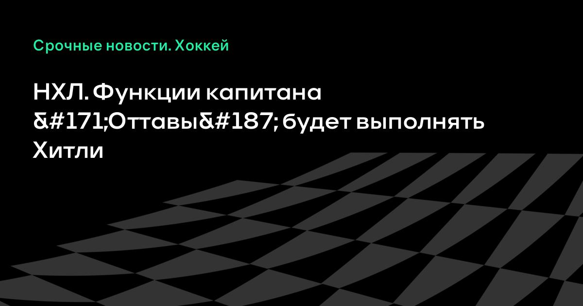 НХЛ. Функции капитана «Оттавы» будет выполнять Хитли