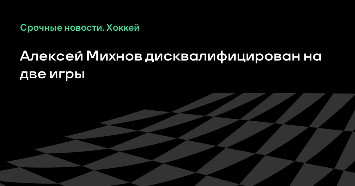 Наложенный на игрока во время матча большой плюс дисциплинарный до конца игры штраф (5+20 минут) заменен матч-штрафом (25 минут) за неправильную атаку соперника с нанесением травмы. В соответствии с регламентом проведения чемпионата КХЛ Алексей Михнов подвергается обязательной дисквалификации на один матч и дополнительной дисквалификации на один матч, сообщает официальный сайт КХЛ.