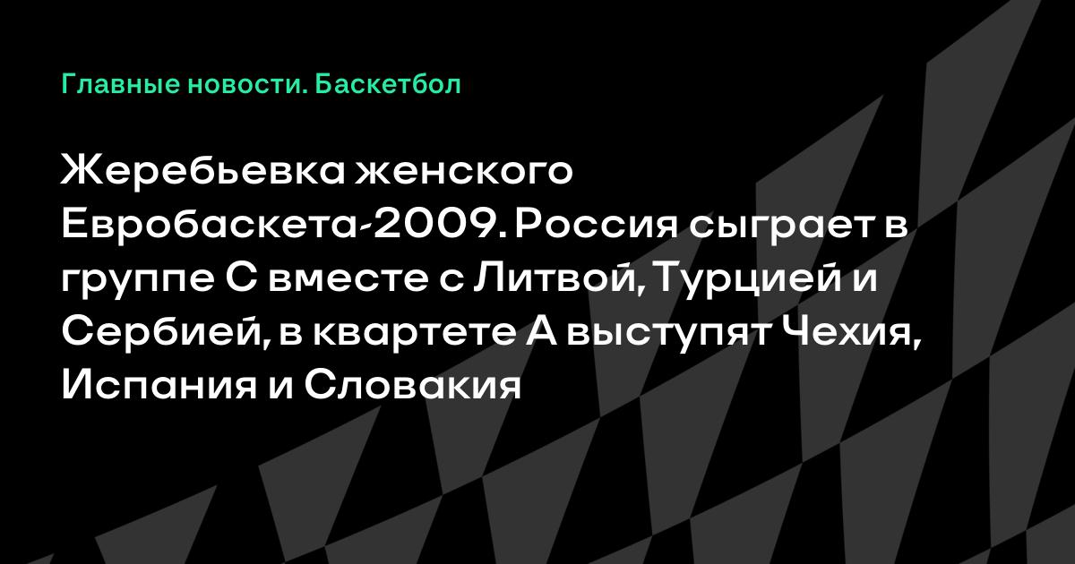 Жеребьевка женского Евробаскета-2009. Россия сыграет в группе С вместе с Литвой, Турцией и Сербией, в квартете А выступят Чехия, Испания и Словакия