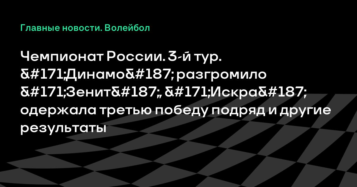 Чемпионат России. 3-й тур. «Динамо» разгромило «Зенит», «Искра» одержала третью победу подряд и другие результаты