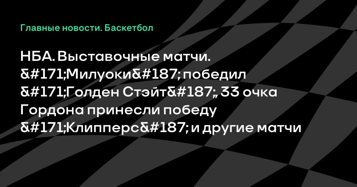 НБА. Выставочные матчи. «Милуоки» победил «Голден Стэйт», 33 очка Гордона принесли победу «Клипперс» и другие матчи