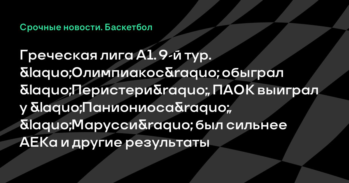Греческая лига А1. 9-й тур. «Олимпиакос» обыграл «Перистери», ПАОК выиграл у «Паниониоса», «Марусси» был сильнее АЕКа и другие результаты