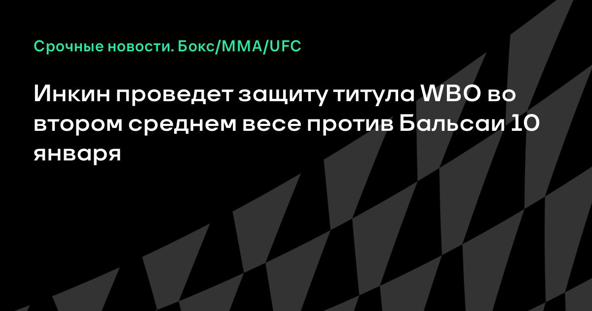 Инкин проведет защиту титула WBO во втором среднем весе против Бальсаи 10 января