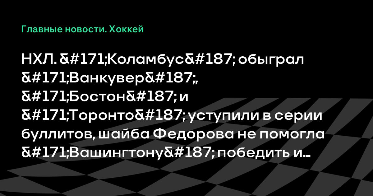 НХЛ. «Коламбус» обыграл «Ванкувер», «Бостон» и «Торонто» уступили в серии буллитов, шайба Федорова не помогла «Вашингтону» победить и другие результаты