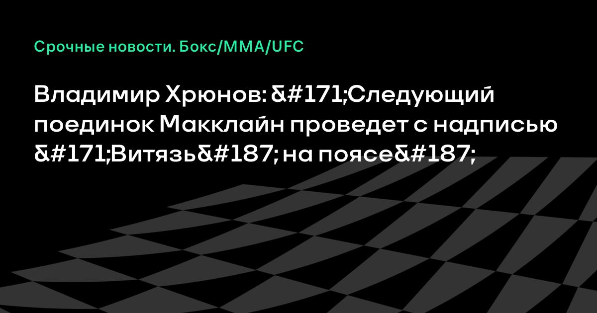 Владимир Хрюнов: «Следующий поединок Макклайн проведет с надписью «Витязь» на поясе»