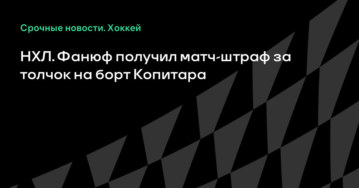 Защитник «Калгари» Дион Фанюф на 6-й минуте игры с «Лос-Анджелесом» (2:1) получил пятиминутный штраф и удаление до конца матча за толчок на борт нападающего «Кингс» Анже Копитара.