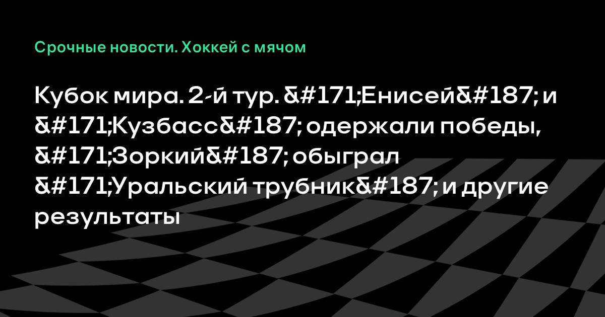 Кубок мира. 2-й тур. «Енисей» и «Кузбасс» одержали победы, «Зоркий» обыграл «Уральский трубник» и другие результаты
