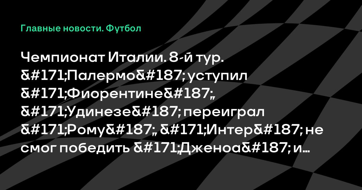 Чемпионат Италии. 8-й тур. «Палермо» уступил «Фиорентине», «Удинезе» переиграл «Рому», «Интер» не смог победить «Дженоа» и другие матчи