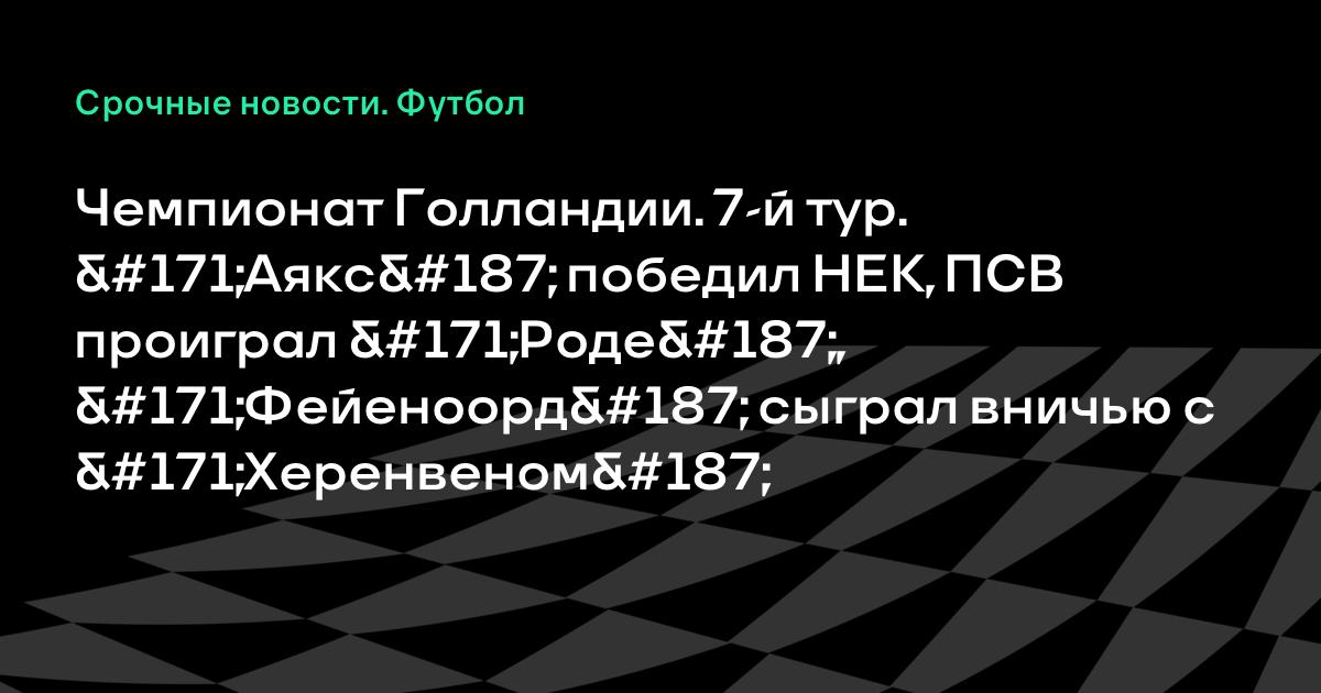 Чемпионат Голландии. 7-й тур. «Аякс» победил НЕК, ПСВ проиграл «Роде», «Фейеноорд» сыграл вничью с «Херенвеном»