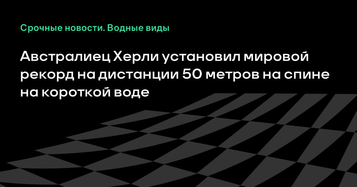 Австралийский пловец Роберт Херли на этапе Кубке мира установил новый мировой рекорд на дистанции 50 на спине на короткой воде. Новое мировое достижение 23,27 на три сотых секунды перекрывает предыдущий рекорд, принадлежащий немцу Томасу Руппарту.