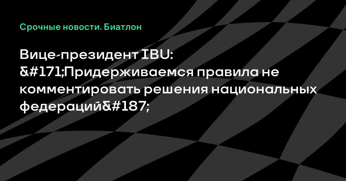 «Естественно, уже в курсе перестановок в руководстве Союза биатлонистов России. В IBU твердо придерживаемся правила не комментировать решения национальных федераций. Все, что произошло дело внутрироссийское, но никак не наше.