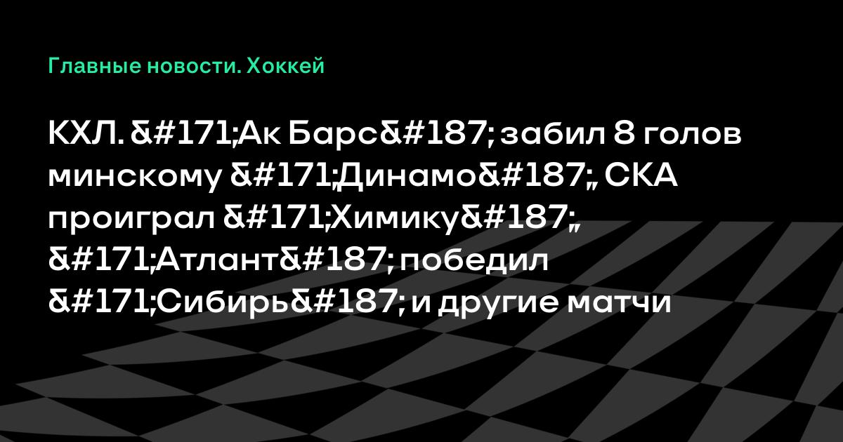 КХЛ. «Ак Барс» забил 8 голов минскому «Динамо», СКА проиграл «Химику», «Атлант» победил «Сибирь» и другие матчи