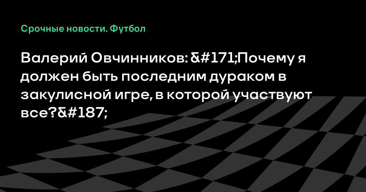 Валерий Овчинников: «Почему я должен быть последним дураком в закулисной игре, в которой участвуют все?»