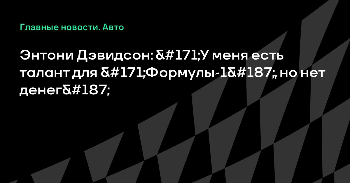 Энтони Дэвидсон: «У меня есть талант для «Формулы-1», но нет денег»