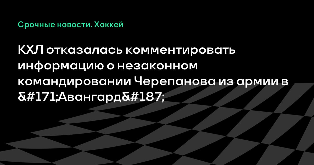 Пресс-служба КХЛ пока не готова комментировать появившуюся в пятницу информацию о том, что Алексей Черепанов был незаконно откомандирован в «Авангард» из железнодорожных войск РФ.