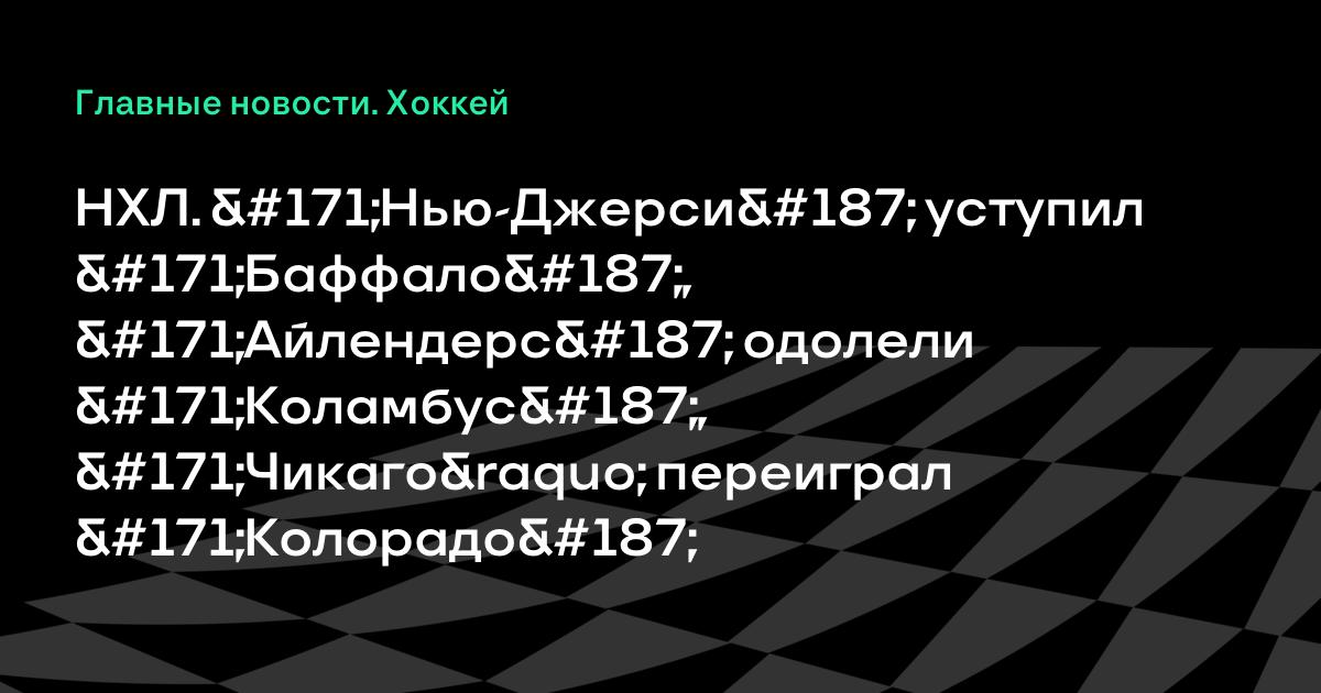 НХЛ. «Нью-Джерси» уступил «Баффало», «Айлендерс» одолели «Коламбус», «Чикаго» переиграл «Колорадо»