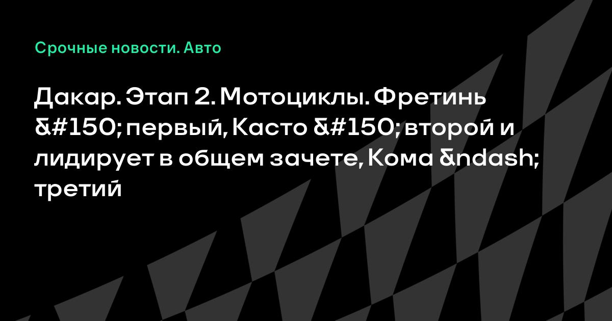 Дакар. Этап 2. Мотоциклы. Фретинь первый, Касто второй и лидирует в общем зачете, Кома – третий