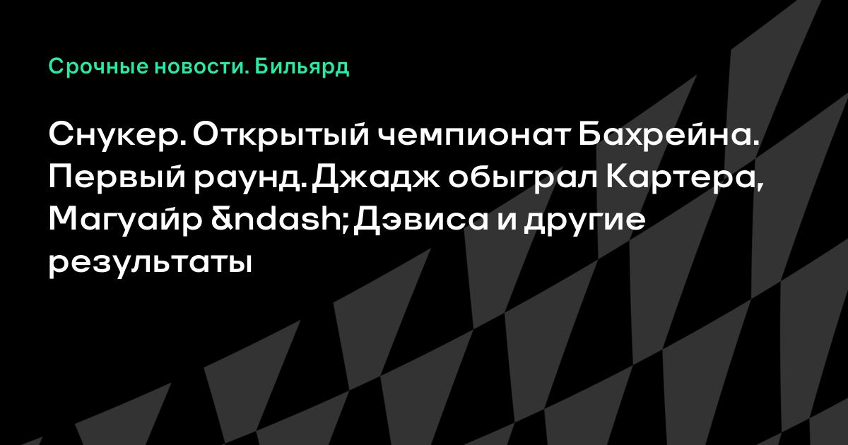 Снукер. Открытый чемпионат Бахрейна. Первый раунд. Джадж обыграл Картера, Магуайр – Дэвиса и другие результаты