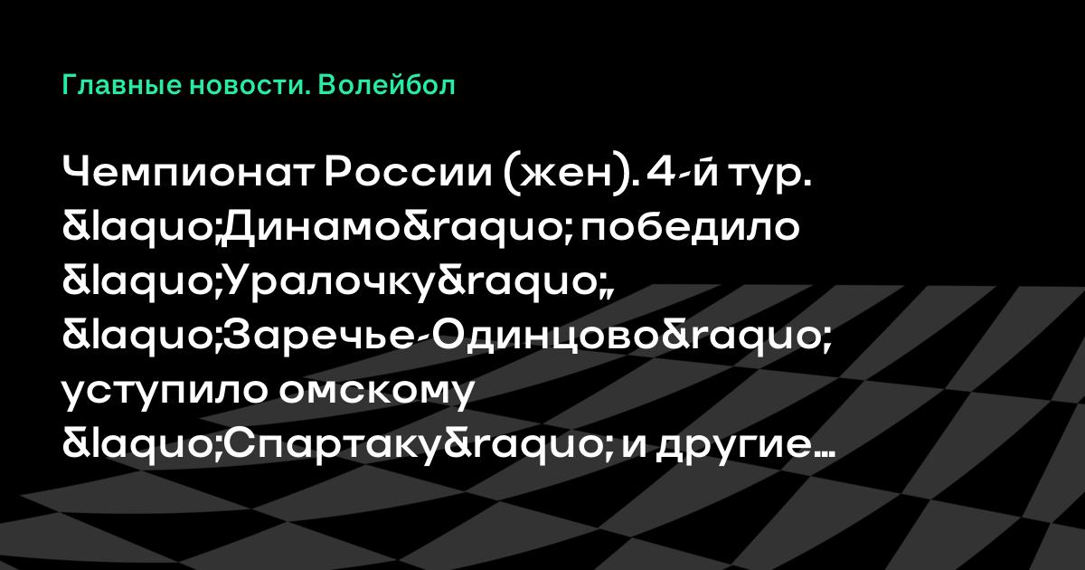 Чемпионат России (жен). 4-й тур. «Динамо» победило «Уралочку», «Заречье-Одинцово» уступило омскому «Спартаку» и другие результаты
