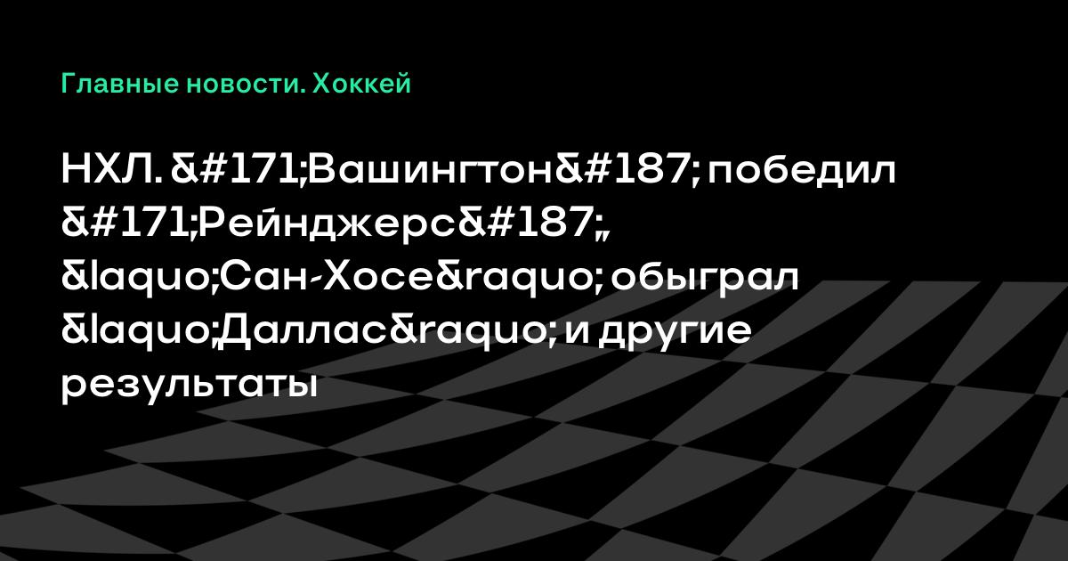 НХЛ. «Вашингтон» победил «Рейнджерс», «Сан-Хосе» обыграл «Даллас» и другие результаты