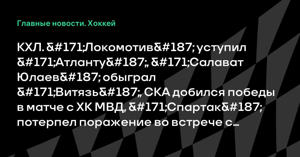 КХЛ. «Локомотив» уступил «Атланту», «Салават Юлаев» обыграл «Витязь», СКА добился победы в матче с ХК МВД, «Спартак» потерпел поражение во встрече с «Северсталью» и другие результаты