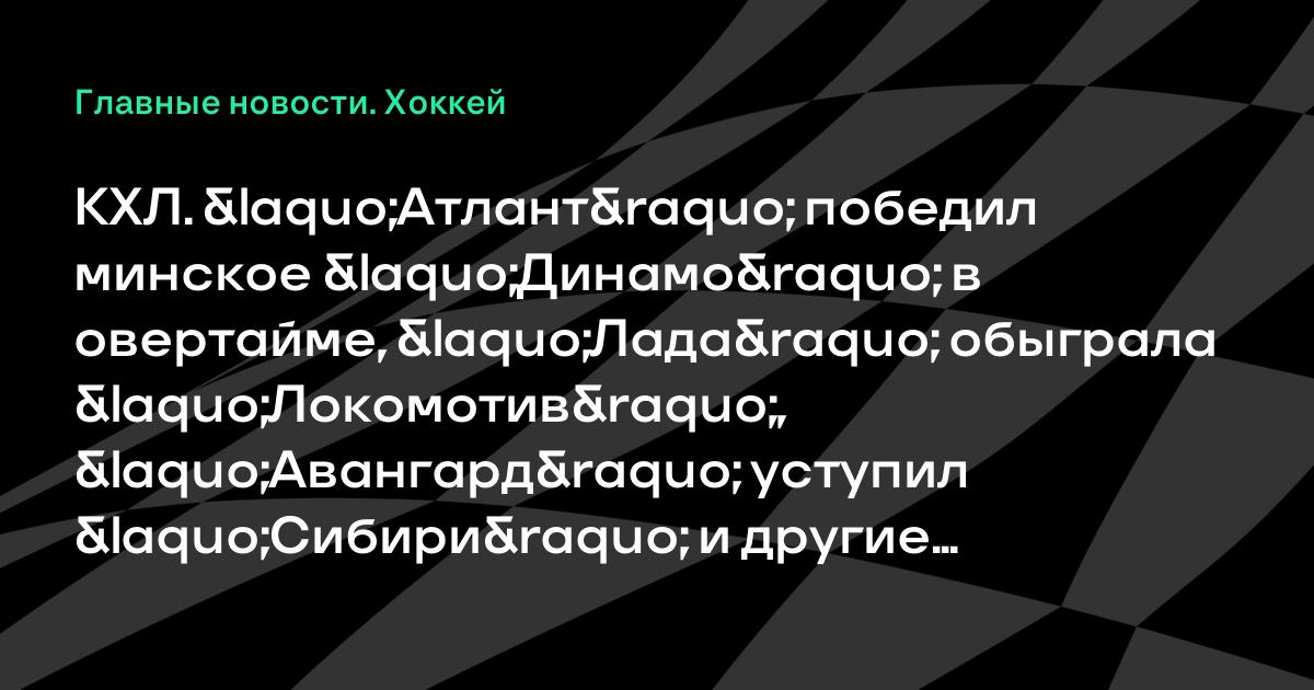 КХЛ. «Атлант» победил минское «Динамо» в овертайме, «Лада» обыграла «Локомотив», «Авангард» уступил «Сибири» и другие результаты