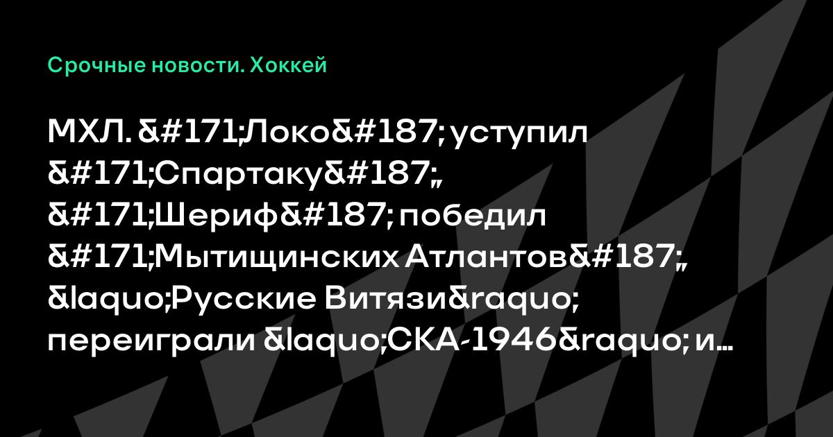 МХЛ. «Локо» уступил «Спартаку», «Шериф» победил «Мытищинских Атлантов», «Русские Витязи» переиграли «СКА-1946» и другие результаты