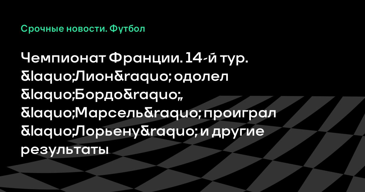 Чемпионат Франции. 14-й тур. «Лион» одолел «Бордо», «Марсель» проиграл «Лорьену» и другие результаты