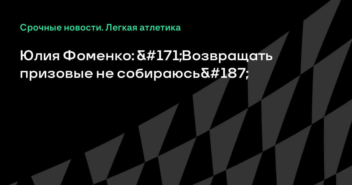 Возвращать призовые не собираюсь. Если меня обяжут выплатить деньги, наверное, уйду из спорта. В этом случае мне не придется ничего платить IAAF. Но все-таки сначала попытаюсь снять с себя обвинения. Главное, чтобы денег на борьбу в суде хватило», приводит слова Фоменко «Спорт день за днем».