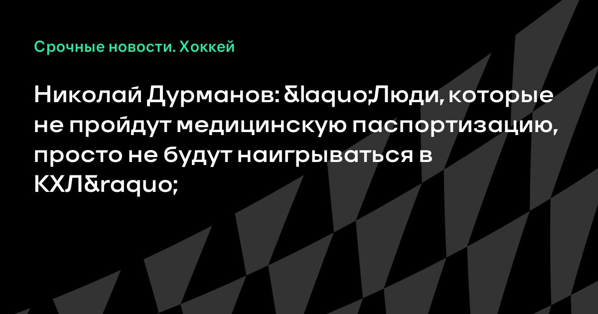 Николай Дурманов: «Люди, которые не пройдут медицинскую паспортизацию, просто не будут наигрываться в КХЛ»