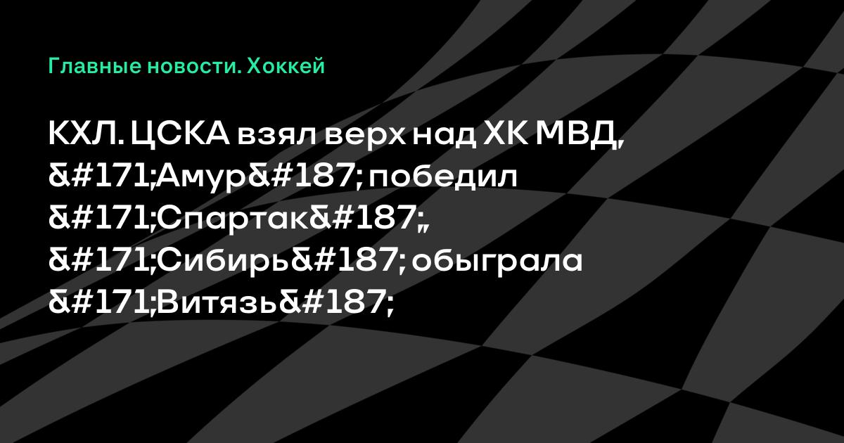 КХЛ. ЦСКА взял верх над ХК МВД, «Амур» победил «Спартак», «Сибирь» обыграла «Витязь»