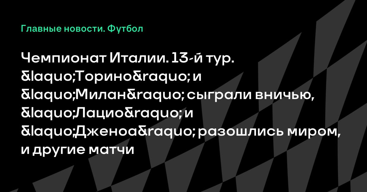 Чемпионат Италии. 13-й тур. «Торино» и «Милан» сыграли вничью, «Лацио» и «Дженоа» разошлись миром, и другие матчи