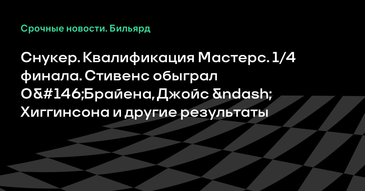 Снукер. Квалификация Мастерс. 1/4 финала. Стивенс обыграл ОБрайена, Джойс – Хиггинсона и другие результаты
