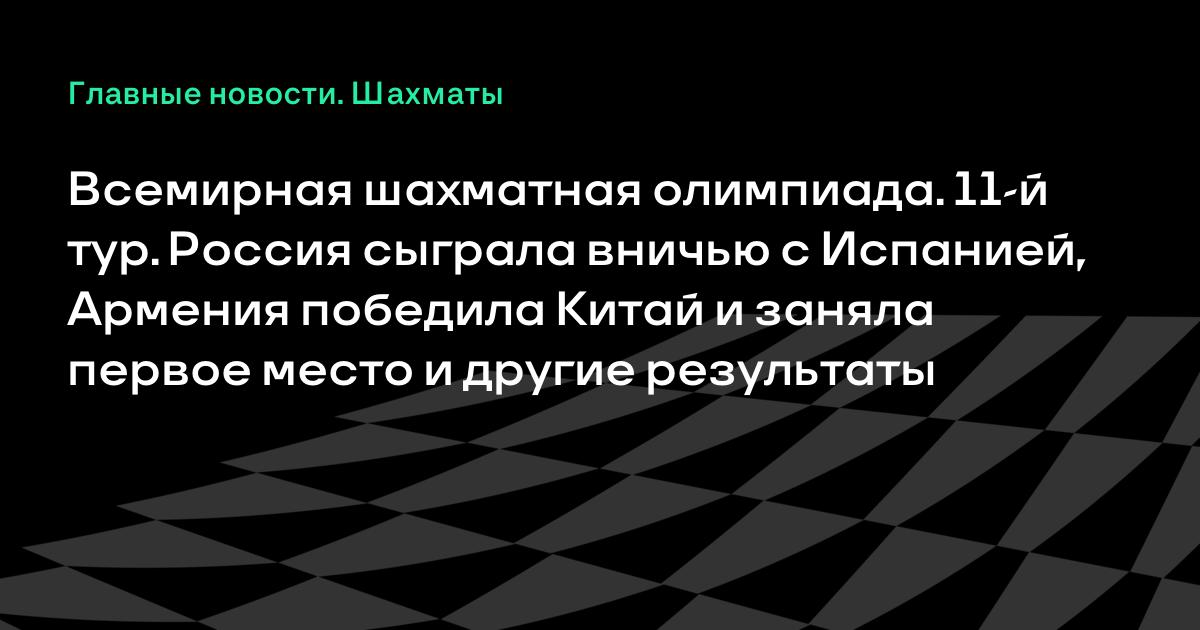 Всемирная шахматная олимпиада. 11-й тур. Россия сыграла вничью с Испанией, Армения победила Китай и заняла первое место и другие результаты